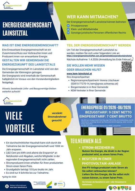 - Zur Interessensbekundung: https://energiegemeinschaften.ezn.at/gemeindekooperationlainsitztal