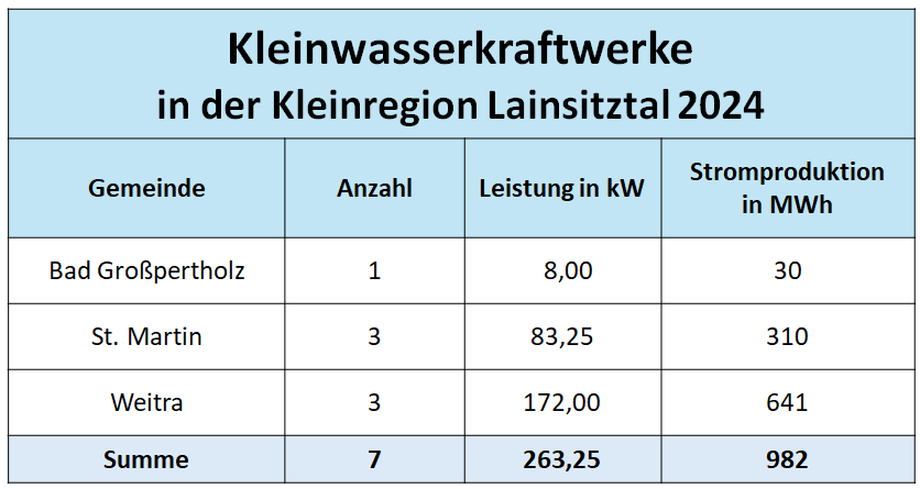 Kleinwasserkraftwerke in der Kleinregion Lainsitztal